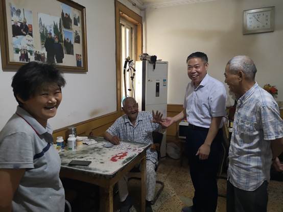 7月3日,校党委书记汪刘送看望慰问我校离休教师、百岁老人倪道明老先生,并为老人送去慰问金和美好的祝福。校党委组织部、校工会(离退休工作处)负责人陪同慰问。