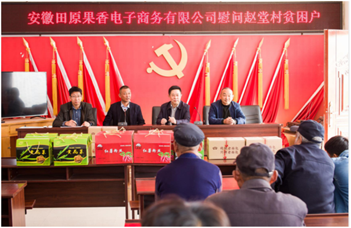 安徽田原果香电子商务有限公司是一家主要经营当地农副产品的电子商务公司,也是萧县县委、县政府向省扶贫办重点推荐的消费扶贫企业,本次捐赠慰问品价值8000余元,为贫困村民和驻村干部献出了一份爱心,体现了该企业积极参与扶贫事业的良好意愿。座谈会上,企业负责人与驻村工作队和村“两委”就如何优化产业结构、如何搭建电子商务平台、“线上线下”销售、销售人才培训以及建立村、企长效合作机制进行了深入探讨。