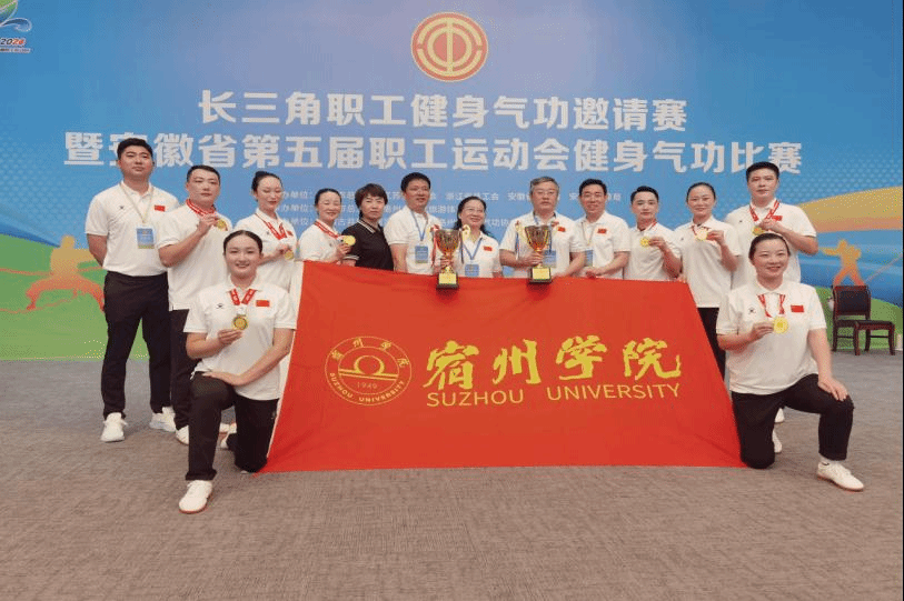 9月9日至11日,安徽省第五届职工运动会健身气功比赛在亳州市举行,来自长三角地区23支代表队,共计195名运动员参加比赛,我校教职工代表安徽省教科文卫体工会参赛并斩获八段锦、五禽戏两个项目桂冠。