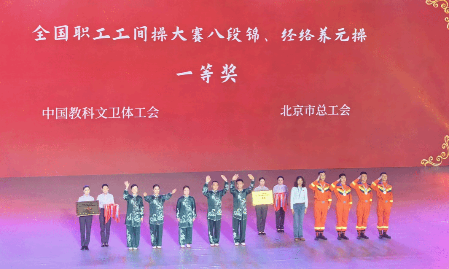 9月19日,2025年“中国梦・劳动美”全国职工工间操大赛暨锅庄舞交流展演活动在青海体育中心落幕。宿州学院健身气功队代表中国教科文卫体工会参赛,凭借出色的表现荣获经络养元操(八段锦)项目全国一等奖。