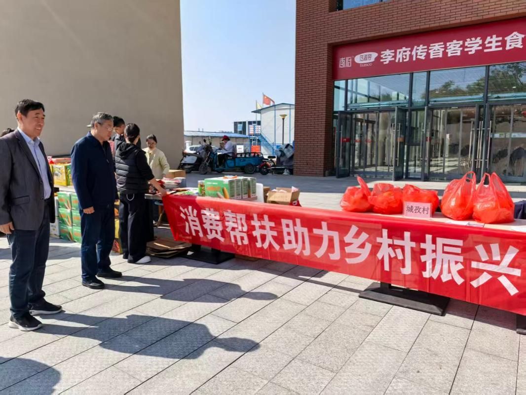 活动现场人头攒动,气氛热烈。城孜村的冬桃、符离集烧鸡、栏杆牛肉、夹沟香稻米、官桥红心猕猴桃、林庄石磨面粉、湖町芝麻油、忠陈村的手工馒头、酱豆、贡麻油,以及福香源、东方果园等品牌的休闲食品等50余种特色农产品琳琅满目。丰富的品类与实惠的价格吸引了众多师生驻足品尝、踊跃购买。大家普遍反映参展农产品品质优良、绿色健康。不少师生还主动询问企业联系方式,表示将在展销结束后向亲友推荐、持续采购。整场活动实现现场销售及订单总额达2.9万元。