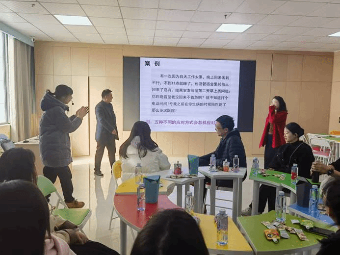 丁老师指导大家通过参与角色扮演、小组讨论和案例分析等环节,模拟真实的亲密关系情境,体验自己在压力情境下的应对方式,深切地认识自己的生存模式类型。在角色扮演中,大家看到当面临冲突时,讨好型的人可能会选择让步和妥协,而指责型的人可能会变得愤怒和攻击。最后,丁老师带领大家学习一致性表达,练习如何表达自己的感受和需求,同时倾听和理解伴侣的观点,提高亲密关系中的沟通效果。