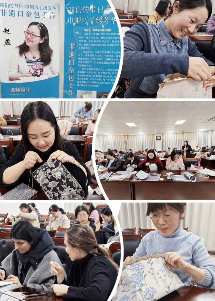 春风含笑织锦绣,非遗雅韵绽芳华。3月7日下午,在第115个“三八”国际妇女节来临之际,校工会、妇联于逸夫楼第一会议室举办“巾帼巧手绣芳华”非遗口金包手作传习工坊活动。校党委书记李红,校党委副书记王俊,校党委常委、副校长王红艳出席活动,与妇联执委会委员、各二级学院及职能部门的50余名女教职工代表共赴一场传统手工艺的文化之约。